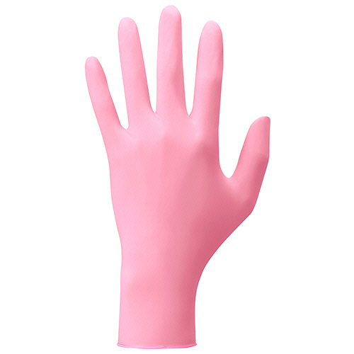 【食品衛生法適合】ピンクカラーで作業性と強度のバランスに優れた汎用性の高いタイプの使い捨てニトリルゴム手袋(パウダーフリー)