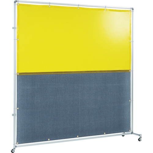 ●火花受けも遮光も兼ね備えたシートです。●アルミニウムフレームなのでスチールに比べ40%軽く、廃棄時、リサイクルが可能です。●ノンアスベスト、ノンセラミックの安全な製品です。●アルミニウムフレームだからスチールより40%軽いです。●アスベストやRCF(リフラクトリーセラミックファイバー)のような有害繊維を含みません。●シートは遮光シートとA種合格品スパッタシートを半々割合です。●火花受けも遮光も兼ね備えたシートでの衝立です。